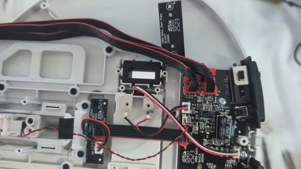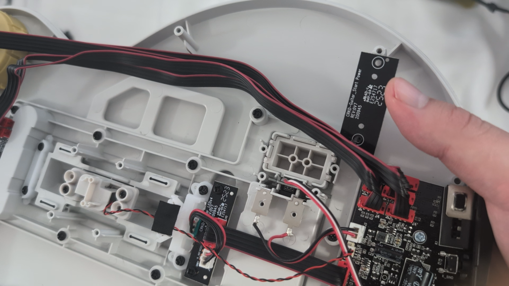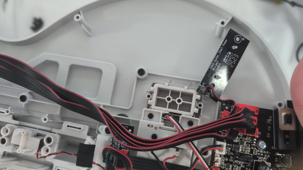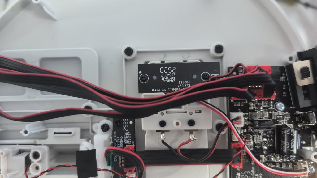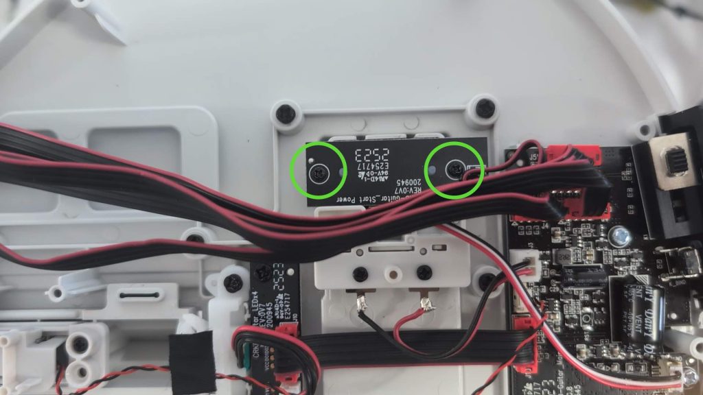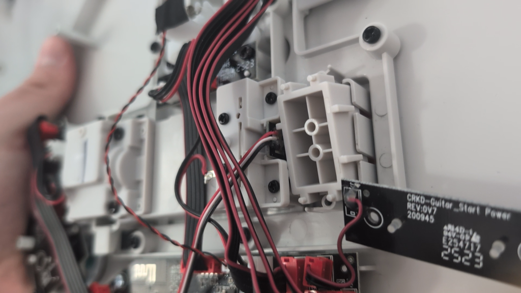 1. Move the wires covering the “CRKD-Guitar_Start Power” board, then remove the 2 PH1 screws that hold the board in place